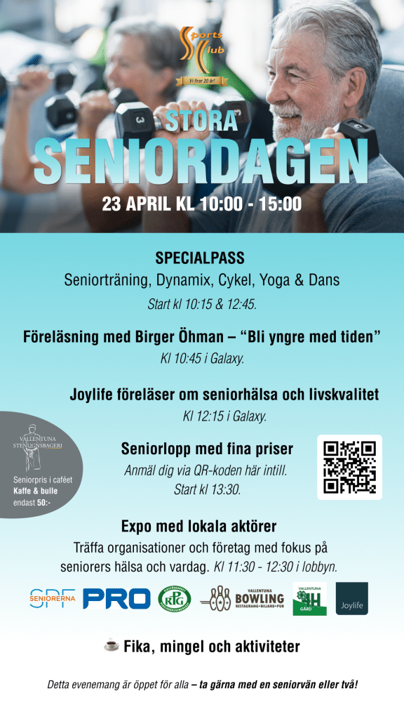 Välkommen till en dag med fullt fokus på SENIORHÄLSA! Detta evenemang är öppet för alla!